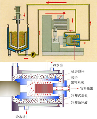 ![]() 循環(huán)操作只需一個(gè)或兩個(gè)攪拌桶實(shí)現(xiàn)循環(huán)砂磨,而且攪拌桶內(nèi)粗顆粒會(huì)快速沉淀而優(yōu)科學(xué)入砂磨腔砂磨。 |