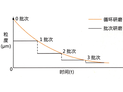![]() 相比傳統(tǒng)磨機(jī),即使在相同的平均粒徑,它可以得到集中的粒度分布。 |